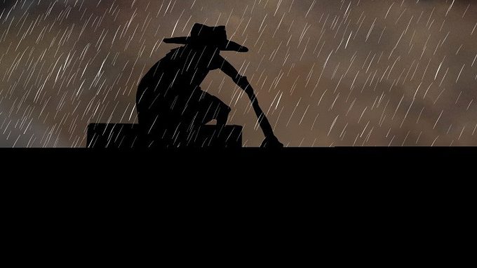 In black-and-white animated cartoon, a suspicious character approaches a sleeping man's house. When the suspect slips into the house, it becomes clear who it is.