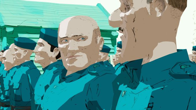 August 1914. While Jean Lemarin is away winning the World Wrestling Championships in Buenos Aires, his daughter is raped by German soldiers at home in Ostend. The Belgian grappler swears revenge and with his coach and young nephew, he enrols in a prestigious corps that moves to the Eastern front in their armoured cars. Author’s film in animation form, in which the protagonist unintentionally ends up in a dramatic odyssey around the world. In a sober animation style and in minimalistic but essential scenes, Jean’s romantic 19th-century worldview irrevocably collapses.