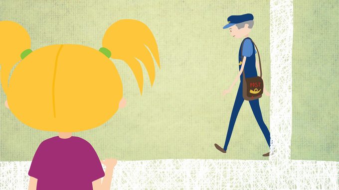 Every day, a mailman delivers the mail in his village, also to the girl next door who often receives postcards from her father. On the mail carrier’s birthday, his doormat remains empty. The girl knows what to do.