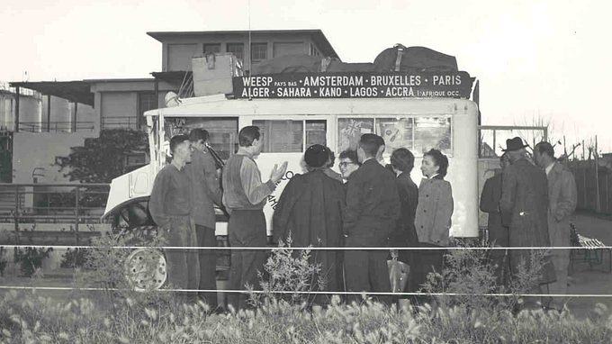 Report on the adventurous trip by the Spectrum film crew, shooting Bruin Goud, a film about the cacao and chocolate production. By car, the crew drives from Amsterdam to then Ghana to record the cacao seed harvest. In the early fifties, a journey of this kind was an exceptional venture, causing quite a stir.