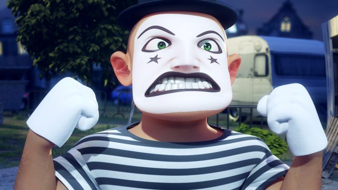 Short animation film in which two mime artists at a fair ground compete for the hand of a gothic cashier. They confound each other with their impressive, creative mimes, until their performance deteriorates into a lethal battle.