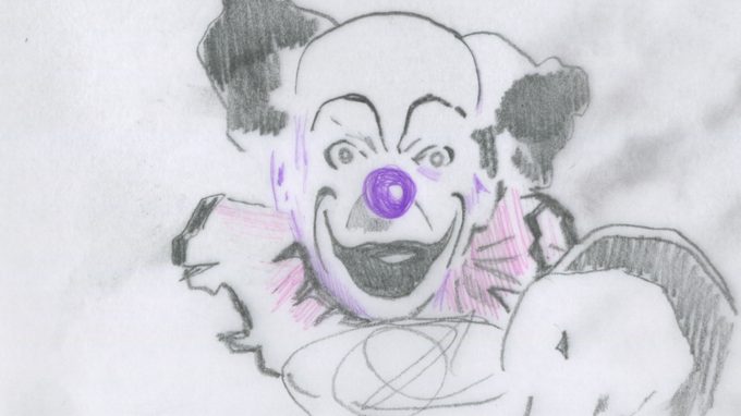 This animation film starts in greyscale; accurately sketched swimmers, deer and manga girls pass by. Gradually, this cheerful image is combined with grim looking pictures of a clown, long claws, a skeleton and a creepy faun. The girls keep dancing, decapitated. Short animation that plays with metamorphoses and being possessed by someone else.
