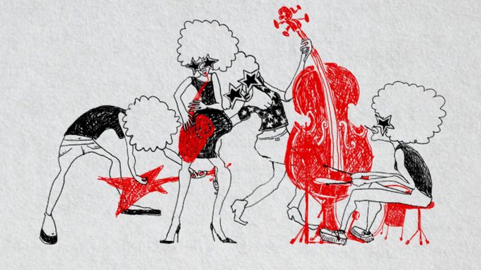 Animation film in black, white and red, in which a group of female musicians is passionately playing music. It’s all about women rocking the stage. Made as a promotional video for a Swiss online social music network.