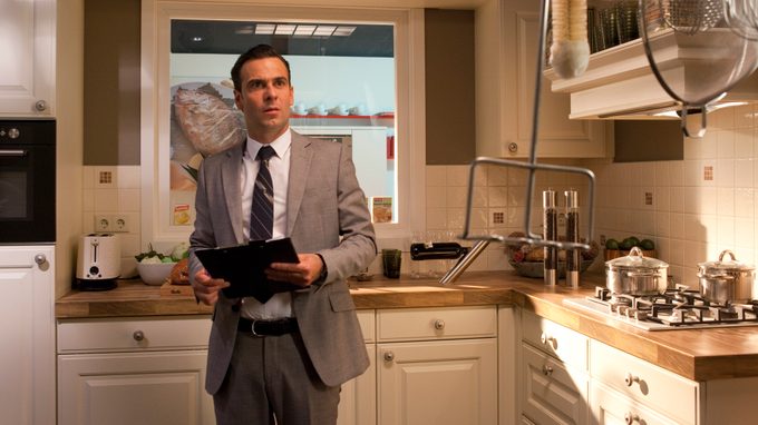 The world of a newly-wed kitchen seller is turned topsy-turvy when his partner suddenly hits him. If at first this seems a harmless reflex, soon the problem appears to be more structural. Slowly but surely, the man tries to prevent worse in this bitter-comic story by bravely reasoning the decline of his relationship away. Then, his wife buys a huge fish at the market and, having learned by experience, he anticipates the inescapable truth.