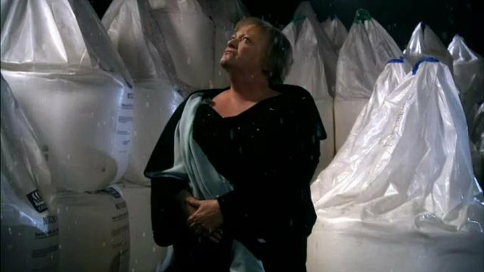 In an uninterrupted sequence, the camera follows a degenerate mother against an alienating background of plastic bags, tractor tyres and women in white slips. She makes an ironical complaint. She threw away her life for love of her son. She let people beat her up - on high heels! - at demonstrations. Junior has mended his ways, but Mum is fed up. Adapted from a monologue by the rebellious Italian playwright Dario Fo.