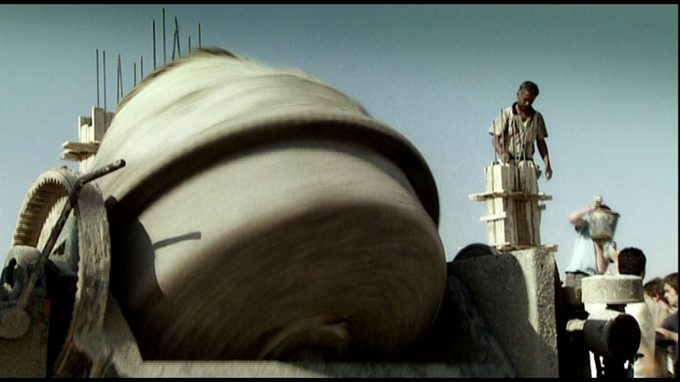 The activities of the Israeli Committee Against House Demolitions (ICAHD) consist of for instance rebuilding Palestinian houses in the occupied territories. In the summer of 2006 a group of ICAHD volunteers were trying to rebuild the former house of Abu Ahmed Al Hadad in the village of Anata (east of Jerusalem), at exactly the same location where it was demolished by the Israeli authorities in late 2005. The film is a meticulously edited 12-minute image and sound composition in which Bartana uses the same stylistic devices as the Zionist propaganda films from the first half of the twentieth century.