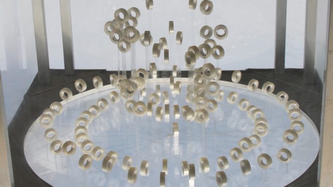 Experimental animation film in which sellotape rolls undergo a lengthy process of development and degeneration. The slow life tempo of the objects is disclosed in an isolated room, where everything is based on a symmetrical composition. From this ordered state, differences in behaviour are slowly made visible by gravity. Although this results in unpredictable forms and movements, they still feel familiar.