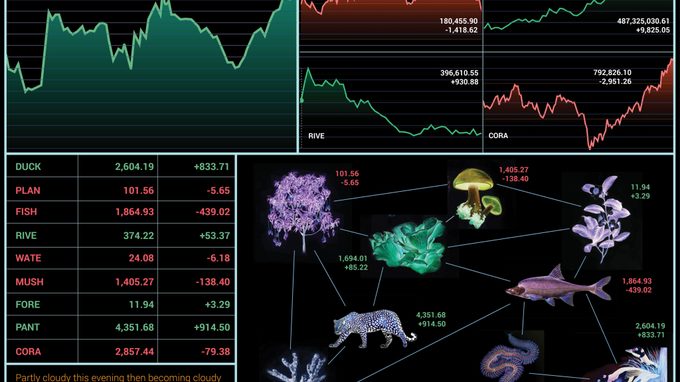 What if ecosystems became the engine of global trade? In the installation The Environmentalist Stock Exchange, visitors can invest in animal and plant species. Each transaction feeds into the simulation, causing plants and animals to flourish, or even increase in number to such an extent that they disrupt the ecosystem. This project by design duo Cream on Chrome uses the language of the stock market to spark a conversation about value systems. Follow the developments on the green charts and spot investment opportunities. You don’t speculate on the ESX only for financial gain, but also for literal organic growth. The better an ecosystem performs and is in balance, the higher the profit. Through this exchange (or entanglement), festival visitors literally become ‘invested’ in the well-being of ant colonies, the Alps, rivers and urban fauna. What species or geographic regions could do with a financial boost? Come and find out!