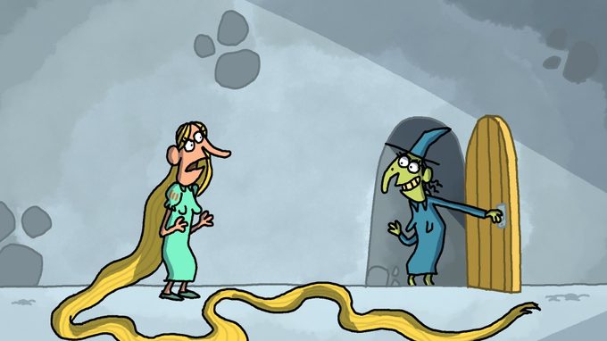 The long-haired lass is locked up in a tower, waiting for the handsome prince to come and save her. But then the fairy tale takes an unexpected turn in this ultrashort animation film.
