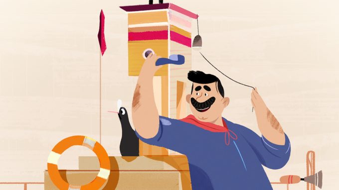 Due to a new bridge, the skipper of a ferryboat is suddenly without passengers. A coot looking for stuff for its nest provides a solution in this animation.