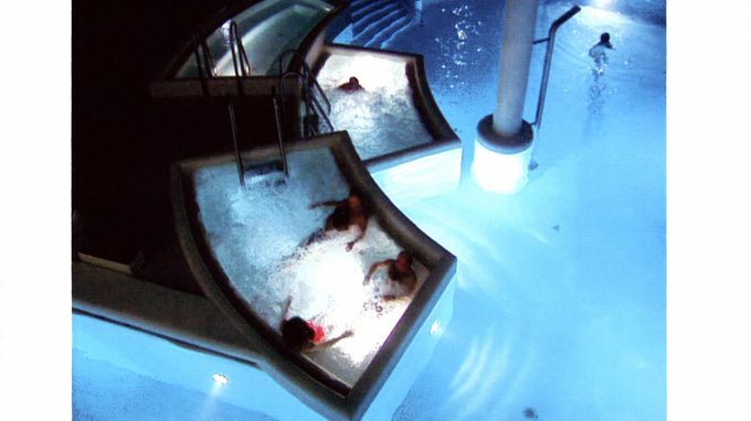Short film gives an impression of the various ways in which people turn to indoor entertainment in winter: in water parks, on ski slopes and against climbing walls.
