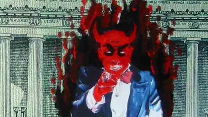 A music video for the song Wrong Time Capsule by the American band Deerhoof, in Martha Colburn's trademark collage-animation style. Ever reappearing figures, often redoubled several times, turn, slide and zoom in and out. From dollar bills to band members, cut and pasted. Outmoded-looking colour patterns next to faces that are being repainted - this is how Uncle Sam changes into Uncle Satan. 'You're caught in the machine.'