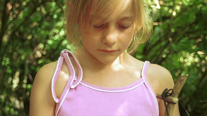 Een klein meisje loopt in het park en vindt een dood vogeltje. Ze besluit het dode beestje een waardige begrafenis te geven - in een zwarte lakschoen die ook in het park ligt.