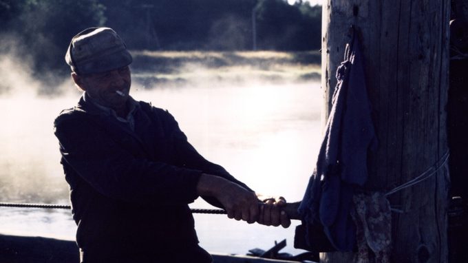 Korte documentaire over een veerman die zijn houten pont met handkracht heen en weer vaart over de Wolga.