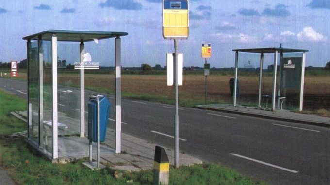 Zeeuwse bushokjes in stilstaand beeld vormen visuele ondersteuning bij geluidsgedicht, dat bestaat uit flarden van de gesprekken van de reeds vertrokken buspassagiers.