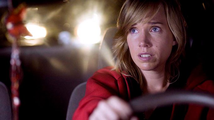 Een jonge vrouw, alleen in een auto op een verlaten weg, raakt beïnvloed door de duistere omgeving. Een kleine botsing met een andere auto lijkt haar ergste angsten te bevestigen.