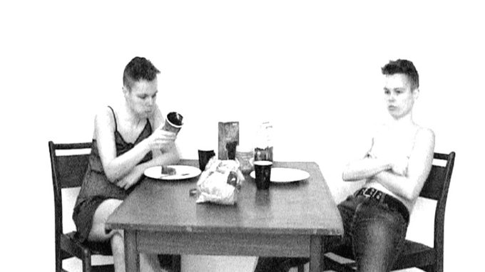 Een jongen met kort haar smeert een boterham. Hij is slechts half in het kader. Het beeld is zwart-wit, op de achtergrond is niets te zien. Aan de andere kant van de tafel eet een op hem gelijkend meisje ook haar ontbijt. Ze zeggen geen woord tegen elkaar. Zitten slechts tegenover elkaar aan die tafel. De twee blijken één en dezelfde persoon, die zich in het midden voelt tussen jongen of meisje zijn.