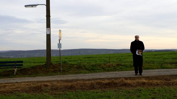 Een oude, wat vermoeide man voelt het einde naderen en besluit op reis te gaan, gewapend met een zakje boterhammen en een krant. Zijn blik glijdt over de drukte van de stad. Ergens aan de rand daarvan, in een prachtige, heuvelachtige omgeving brengt hij een koude nacht door. Terwijl hij wacht op zijn vrouw, heeft hij een bijzondere ontmoeting.