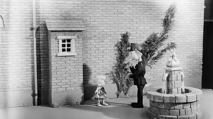 Poppenanimatiereclame voor waspoeder Fewa waarin een engeltje van een wolkje naar beneden valt waardoor haar jurkje vies wordt.
