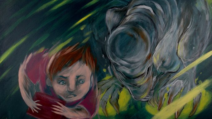 Handgeschilderde animatie over twee kinderen die harmonieus samen spelen tot ze met zijn tweeën één cadeau moeten delen. Jaloezie doet ze veranderen in monsters.