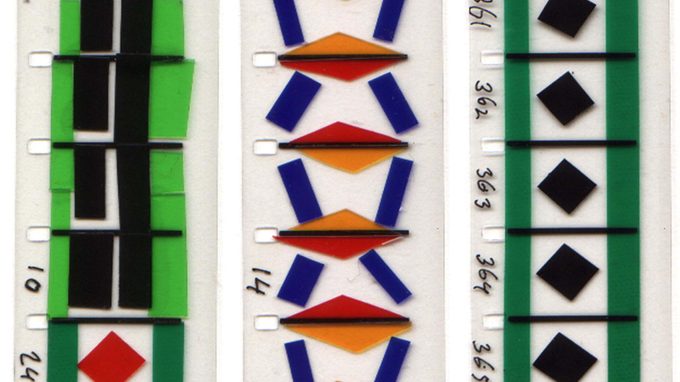 Abstracte animatie in twee delen waarin figuren en lijnen die direct op de filmstrook zijn aangebracht een verrassend vormenspel laten zien.