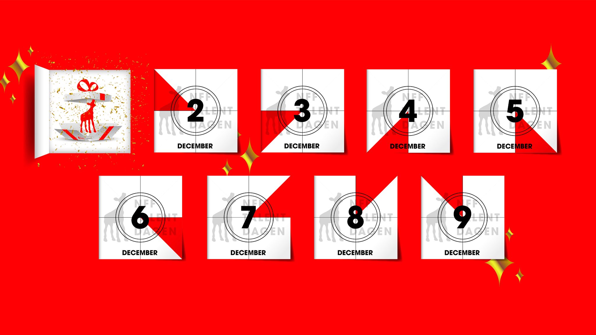 Van 1 t/m 10 december geven we in aanloop naar de NFF Talentdagen elke dag een cadeautje weg uit onze digitale adventskalender. Houd onze social media in de gaten voor de leukste cadeautjes en winacties. De cadeaus uit de adventskalender worden je aangeboden door de NFF Talentdagen.